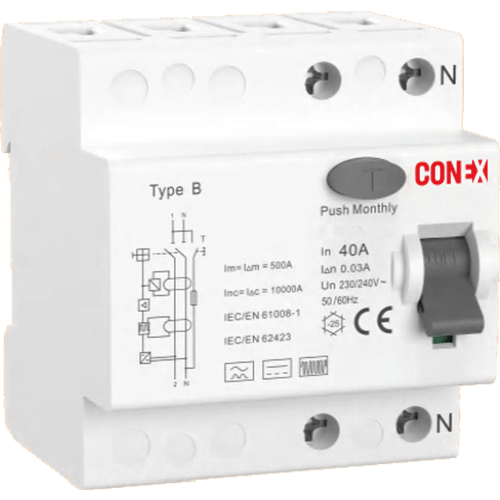 CONEX Electric can currently provide you with a variety of diverse types of RCCB (such as AC, A, S, B, EVA+DC6mA) to meet the needs of different application scenarios.